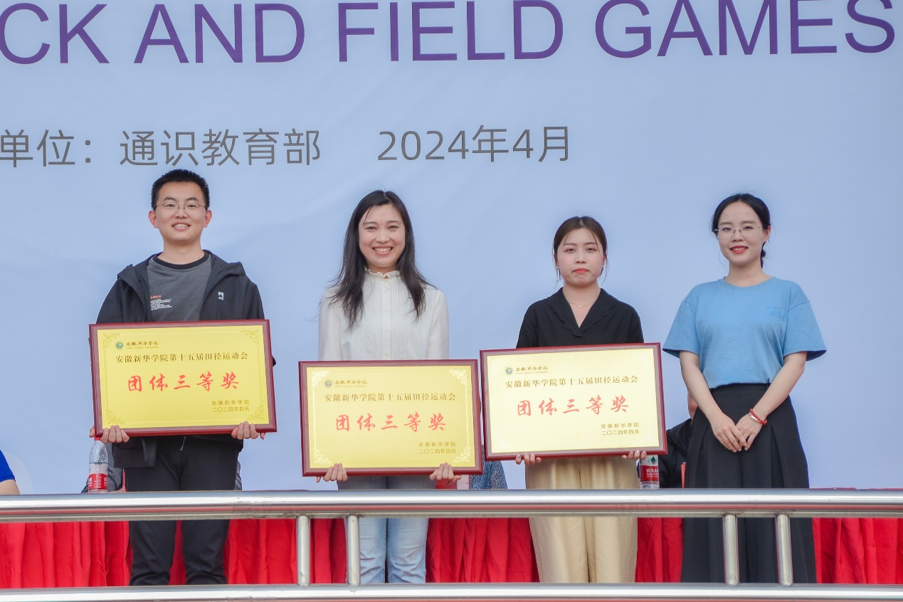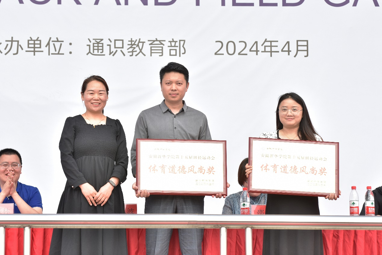 闭幕式上,通识教育部副主任何亚梅为获得“体育道德风尚奖”“最佳组织奖”的单位颁奖。商学院、城市建设学院获得“体育道德风尚奖”;外国语学院/国际教育学院、科技学院/继续教育学院获得“最佳组织奖”。