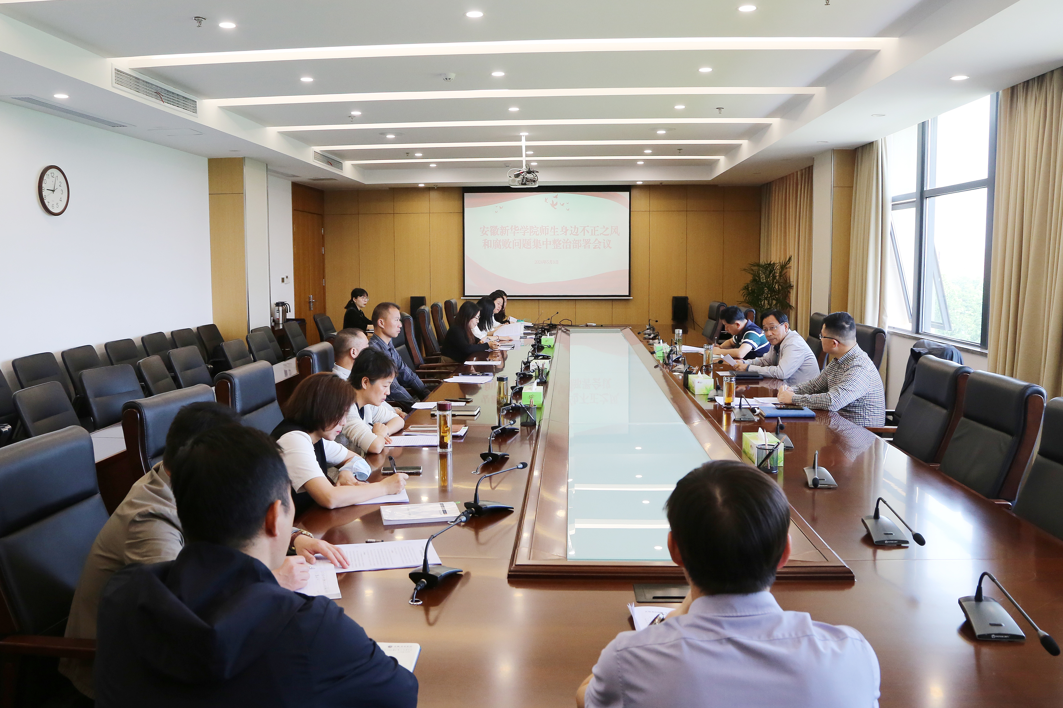 会议的主要任务是深入学习贯彻4月28日召开的全省教育领域群众身边不正之风和腐败问题集中整治推进会会议精神,凝聚思想共识,全面部署pp电子集中整治工作。首先,与会人员学习了中共安徽省委教育工委、安徽省教育厅印发的《开展全省教育领域群众身边不正之风和腐败问题集中整治实施方案》文件精神。贺行佳宣读了《开展pp电子官方网站师生身边不正之风和腐败问题集中整治实施方案》,并对相关工作进行部署。
