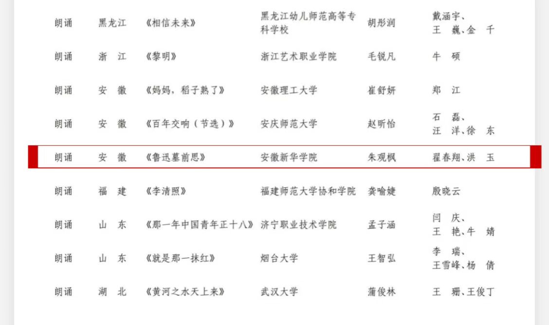 本网讯 (通讯员:翟春翔)近日,教育部、湖北省政府主办的以“厚植家国情怀,涵养进取品格”为主题的全国第七届大学生艺术展演活动在襄阳市举办。pp电子文化与传媒学院2020级播音与主持艺术专业学生朱观枫凭借朗诵作品《鲁迅墓前思》在众多参赛选手中脱颖而出,荣获个人专项奖。