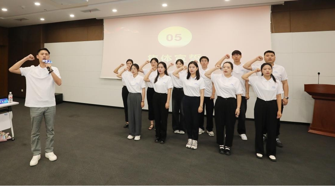 新辅导员代表王子乔老师与导师代表胡晶晶老师相继发言,前者阐述了对即将投身教育事业的热切憧憬,后者则对新成员致以热烈欢迎,寄予厚望与极高期待。随后,12位新入职辅导员共同宣誓,洪亮的声音、坚定的誓言,为学校学工团队补充了新力量。