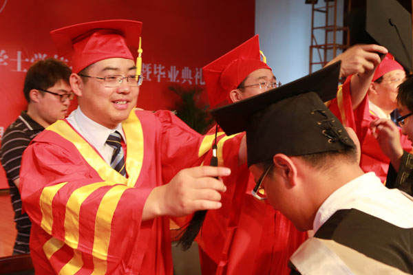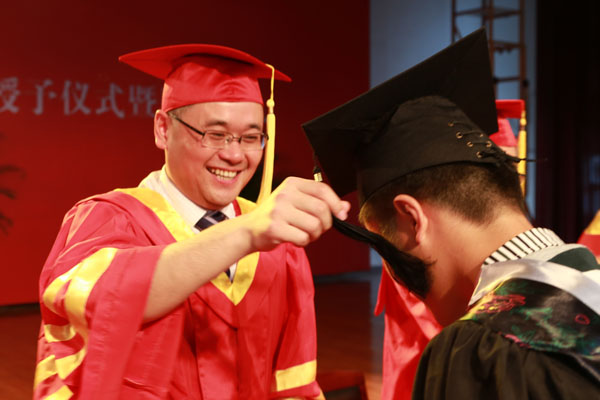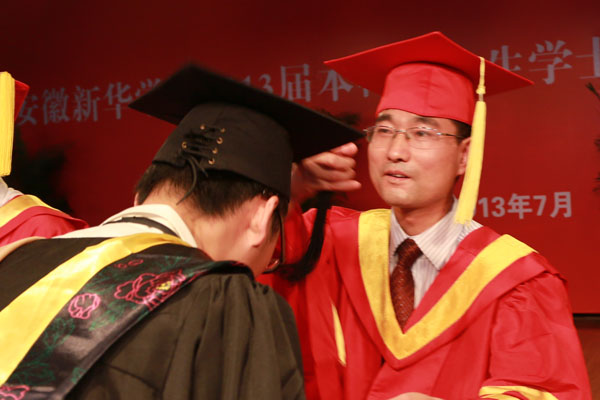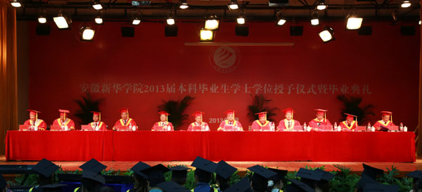 集团公司副总裁、学校执行董事、党委副书记王孝武,党委书记、督导专员胡昭林,院长、校学术委员会主任石秀和,副院长杨世国、马凤余、袁种宝、倪征等与学生代表一一握手,为他们颁发学士学位证书、扶正流苏,祝贺他们顺利完成大学四年的学业。