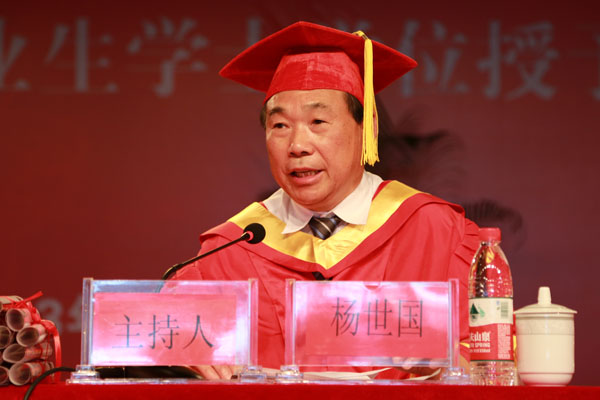 石秀和教授在会上发表了重要讲话。他代表学校全体师生员工向即将踏上全新征途的2013届毕业生们表示衷心的祝贺,并送上最美好的祝愿。他说,毕业典礼是母校为即将远去的学子们所上的最后一课,要送给学子们一份来自母校最真诚的告诫,一份沉甸甸的嘱托,一份殷切的期望。他指出,大学乃大师与一群大学生之所谓也,得天下英才而育之,才可谓大学。大学是英姿勃发的少年追寻梦想的摇篮。在这个温暖、舒适、温馨、具有安全感的摇篮里,同学们汲取营养,享受呵护,孕育了对未来的梦想,每一个人都对未来的生活有一番向往,对今后的人生充满了期待。石秀和说,未来的行程不大可能总是一帆风顺,希望同学们即使经历再多的烦恼、挫折、委屈、愤懑甚至痛苦,也不要懈怠观望,不要丧失信心,不要抛弃学生时代的求知欲望,不要放弃学生时代的理想追求。热爱本职工作和脚踏实地的敬业精神是时代的呼唤,也是大学生求职竞争和生存发展的需要。他指出,只有始终坚持立足实际、踏实做好工作、敬业精业的精神,不断追求自我完善,勇于面对各种挑战,同学们才能获得社会的认可与他人的帮助,才能迎来光明、精彩的未来。同学们只有承担起自己应当承担的社会责任、职业责任、家庭责任,才能实现自身良好生存与自由发展,才能收获成功的事业与美满的家庭,才能在未来的发展道路上健步如飞,走得更快、更好、更远。石秀和希望每一位毕业生都能实现自己在摇篮中所做过的最美、最绚烂的梦。