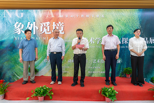本网讯(通讯员:王静)为了致敬第40个教师节,经过精心筹备,“象外觅境”艺术学院师生探索作品展于教师节当天在学校艺术展示中心开幕。集团领导,学校副校长戴昕、王琦进,及教务处、科技处、大学生素质教育中心、艺术学院负责人及师生代表共同出席。仪式由艺术学院执行院长许存福主持,院长江河作了热情洋溢的致辞。戴昕宣布展览开幕,现场师生们报以热烈掌声。伴随着欢快音乐,校领导和师生们步入展厅观赏师生作品。观展过程中,校领导对本次展览给与了高度评价并鼓励师生创作更多更好的作品,同时对在场老师们致以节日问候!