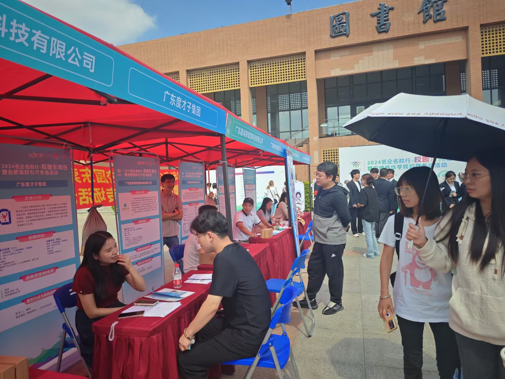 同时,在图书馆南广场,东莞域嘉精密五金塑胶制品有限公司、广东度才子集团、广东气派科技有限公司、富之馀工艺品有限公司等东莞市石排镇20家重点企事业单位开展了现场招聘,吸引了500余名毕业生参加,据悉,有200名学生初步达成求职意向。