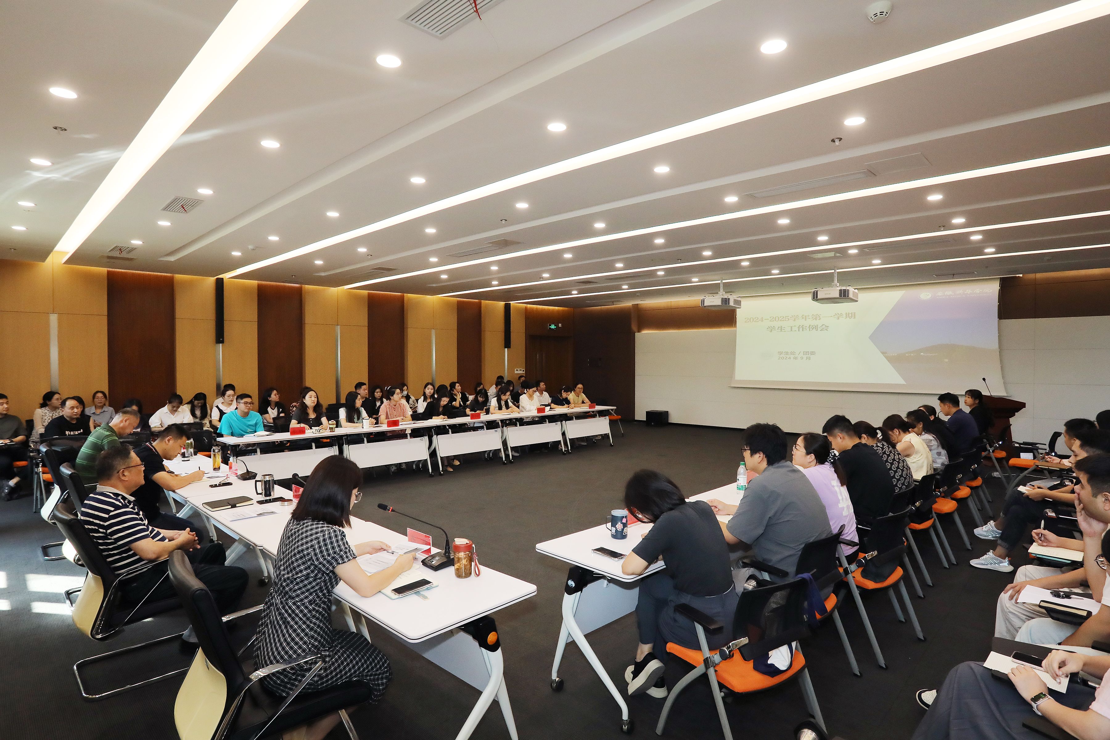 本网讯(通讯员:王强亚、靳荟民 摄影:翟漱文)9月29日下午,学生处/团委在科研楼一楼多媒体会议室组织召开2024-2025学年第一学期9月份学生工作例会。副校长李金星、王琦进、学生处/团委、保卫处负责人、各二级学院分管学生工作副院长/院长助理、学管秘书、辅导员代表及学生处/团委相关人员参加会议,会议由学生处处长芮萍主持。