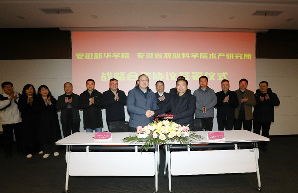 随后赵皖平副院长与赵良庆校长一起为“水产增养殖安徽省重点实验室智慧渔业研究中心”揭牌,江河所长与戴昕副校长签署了战略合作协议。