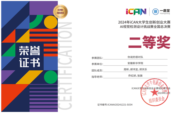 首次!新突破!pp电子学子获2024年iCAN大学生创新创业大赛AI视觉检测挑战赛全国总决赛二等奖两项
