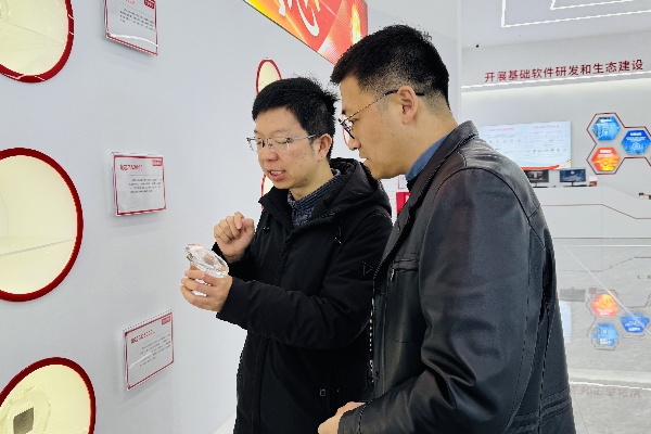 活动伊始,龙芯中科(合肥)总经理彭飞率校方代表参观了企业展厅,通过生动的技术演示与案例讲解,全面展现了国产自主芯片的研发历程、创新生态及校企合作的丰硕成果。展厅内,从“中国芯”的硬核科技到教育赋能的鲜活实践,无不让在场嘉宾感受到科技报国的澎湃力量。