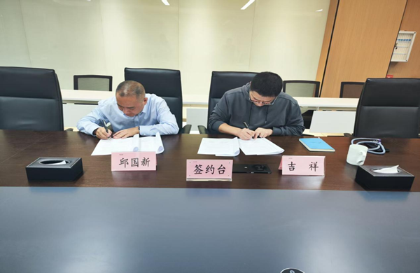 科技处处长邱国新和吉祥总经理代表校企双方签署了校企合作框架协议。