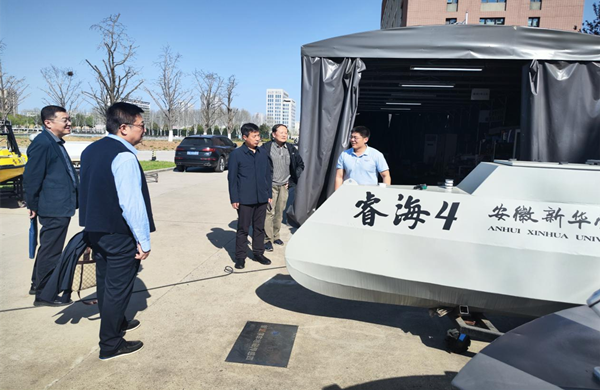 赵良庆对安徽省航海学会、合肥市海事(港航)管理服务中心领导的到来表示热烈欢迎,并简要介绍了学校的整体发展情况,重点阐述了pp电子睿航无人艇团队近年来取得的成绩。他指出,学校始终坚持以服务地方经济社会发展为导向,积极探索与行业、企事业单位、科研院所的交流与合作,致力于培养社会需求的高素质应用型人才,希望通过此次交流,能够进一步加强与行业协会、管理部门的紧密合作,共同为安徽省内陆湖水域的健康发展贡献科研力量和人才支撑。