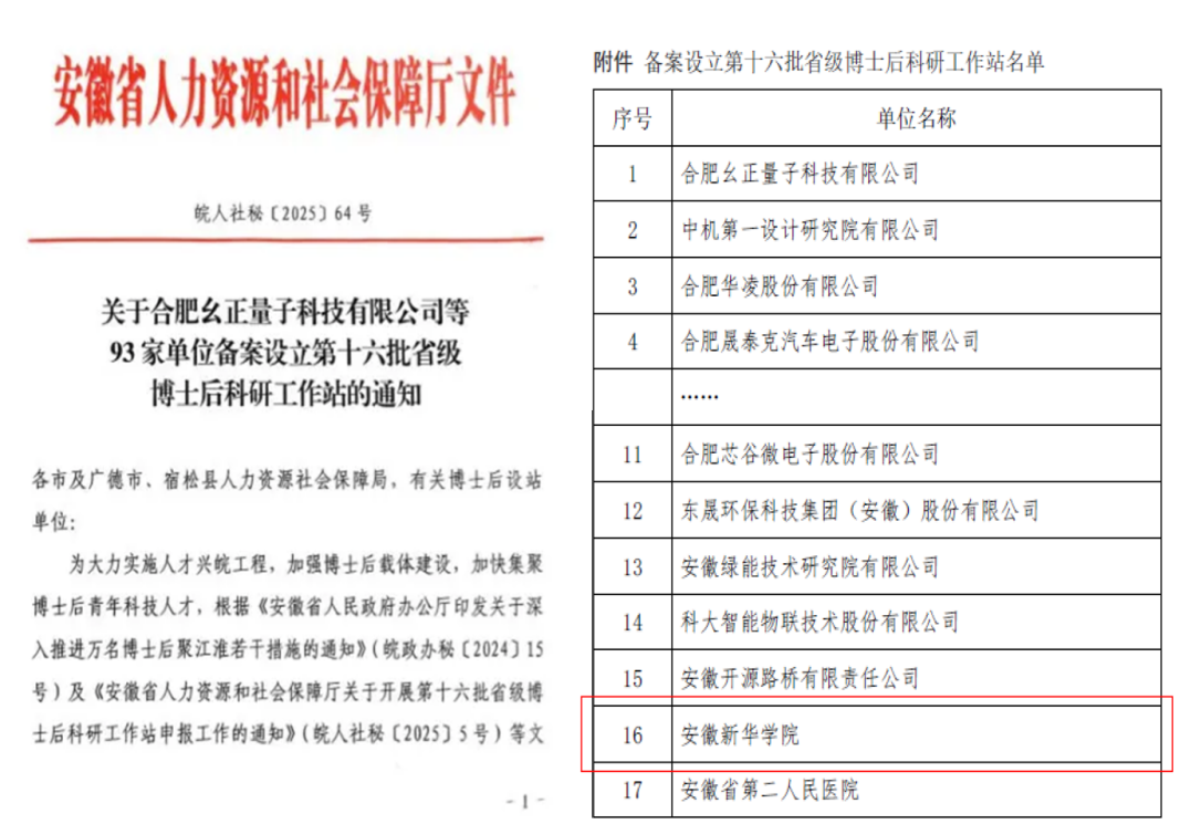 本网讯(通讯员:潘玲阳)根据安徽省人力资源和社会保障厅《关于设立第十六批省级博士后科研工作站的通知》(皖人社秘〔2025〕64号),pp电子成功获批设立省级博士后科研工作站,成为合肥市高新区唯一拥有博士后科研工作站的高校。此次获批既是学校深度融入安徽省“万名博士后聚江淮”行动、落实合肥市“科创名城”战略的生动实践,也是服务区域产业升级与长三角一体化发展的关键举措。