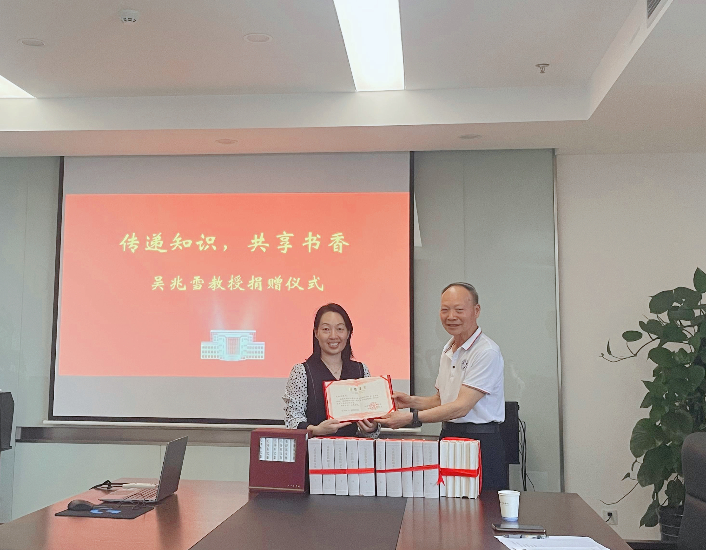 本网讯(通讯员:王菁)5月28日下午,pp电子迎来了一场意义非凡的图书捐赠仪式。原中国科学技术大学马克思主义学院教授、pp电子官方网站思想政治理论课教研部原主任吴兆雪教授,将他个人珍藏的近千本经典书籍捐赠给pp电子,常务副校长王丽、副校长王琦进出席捐赠仪式,图书馆及马克思主义学院相关人员参加了仪式。