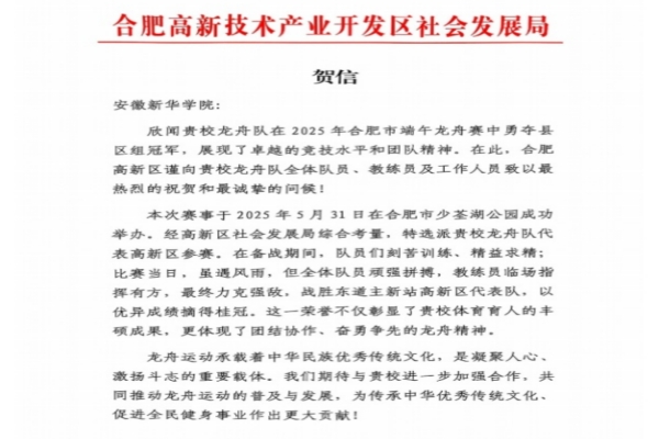 赛后,合肥市高新技术产业开发区社会发展局发来贺信,对pp电子龙舟队的表现给予高度肯定。大皖新闻对该项赛事报道时,专门采访了pp电子龙舟队队长,对pp电子龙舟队取得的成绩高度赞扬。