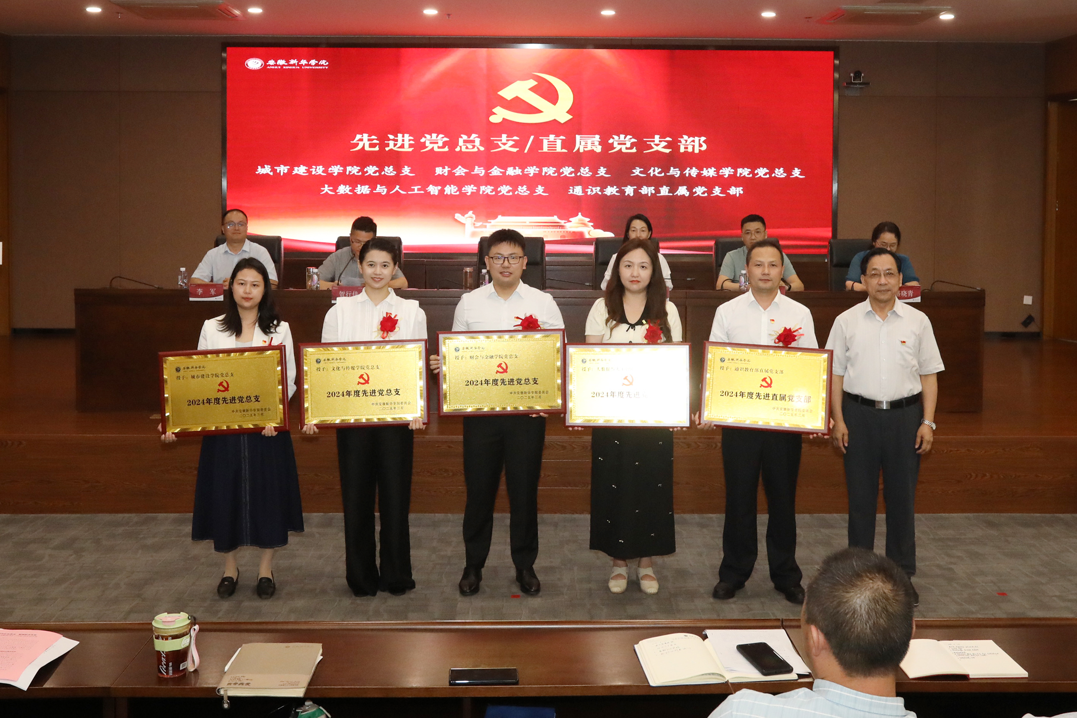 副校长王琦进先进党支部颁奖。