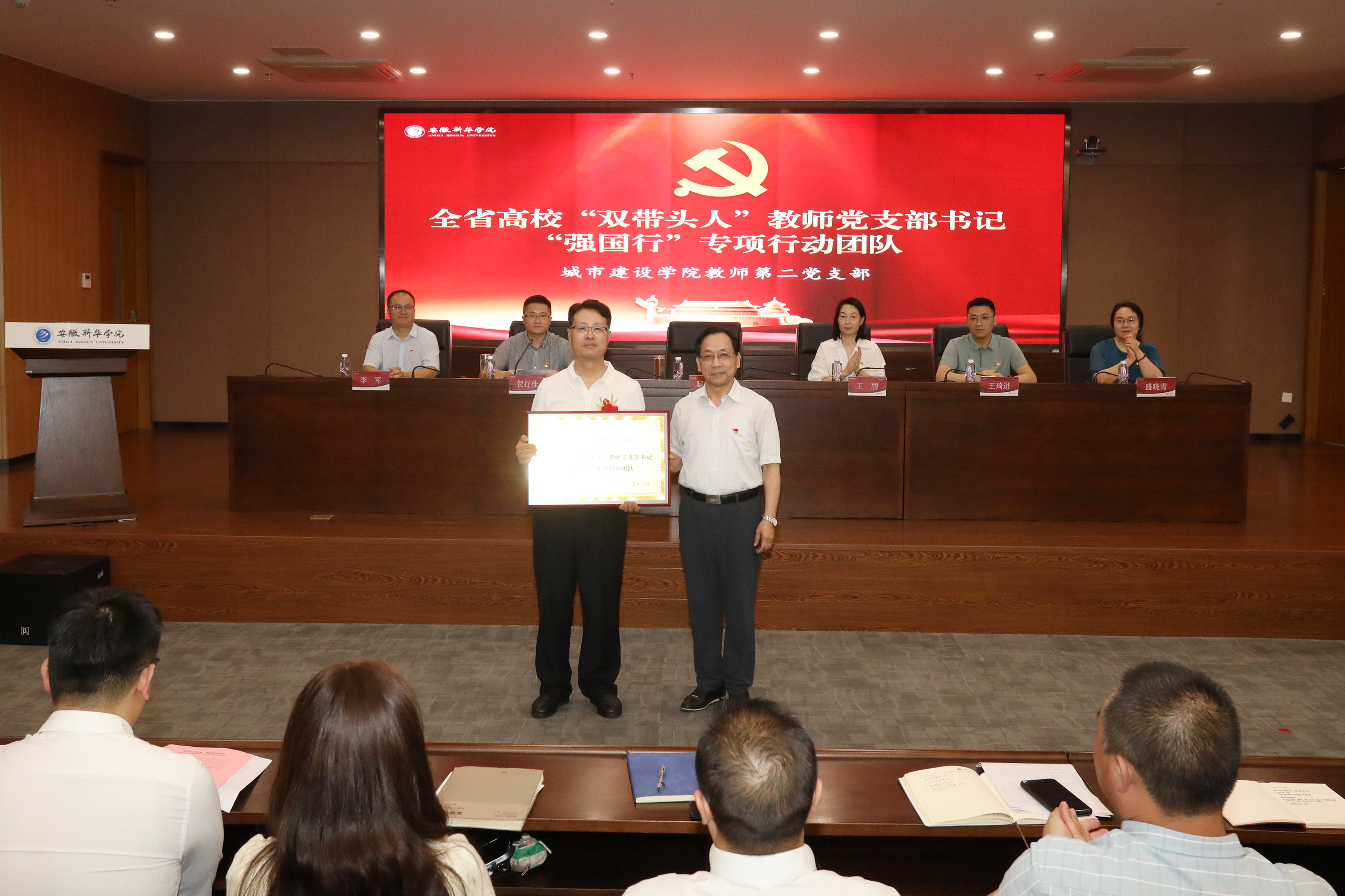 省督导专员、校党委书记邸建伟为先进党总支/直属党支部,全省“强国行”专项行动团队获得单位城市建设学院教师第二党支部颁奖。