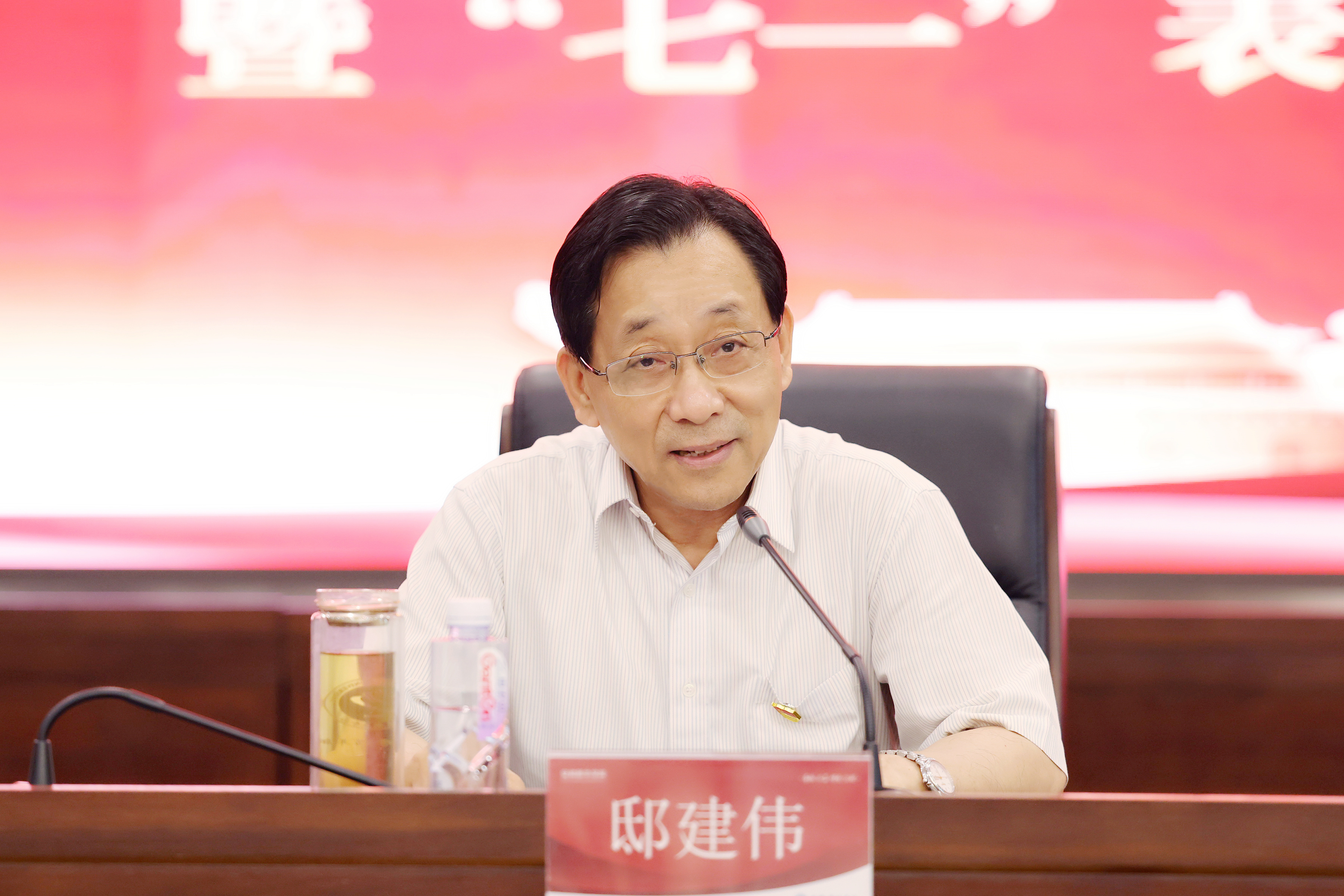省督导专员、校党委书记邸建伟作总结讲话。他向受表彰对象表示热烈祝贺,提前向全体党员致以节日问候,并充分肯定了全校各级党组织和广大党员干部在学校高质量发展中做出的积极贡献。他表示,此次表彰是一堂生动的党课,旨在表彰先进、树立标杆,进一步激励全校各级党组织和广大党员不忘初心、牢记使命,踔厉奋发、勇毅前行,为推动学校高质量发展提供坚强政治保障。面对新时代新征程,他代表校党委对全校各级党组织和党员提出三点要求:一是永葆赤诚之心,做政治坚定的表率;二是筑牢组织之基,做党建创新的标杆;三是深化融合之道,做发展赋能的引擎。新时代高校党的建设工作责任重大、使命光荣、任务艰巨。他号召全体党员要进一步弘扬伟大的建党精神,坚定信心、奋勇前进,为学校高质量发展作出新的更大贡献!