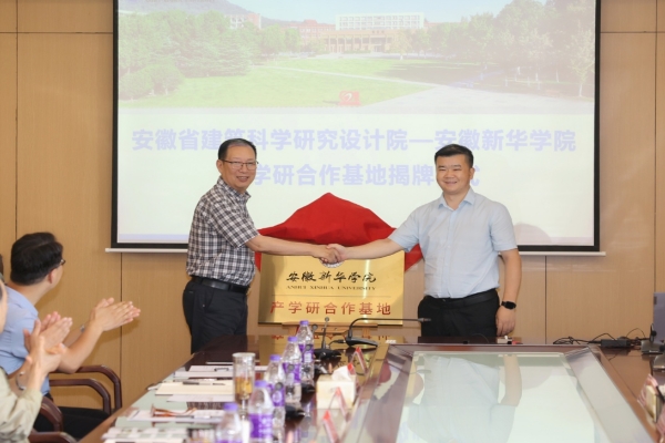 安徽省建科院党委副书记、院长刘春雷与pp电子官方网站校长赵良庆共同为产学研合作基地揭牌。随着红绸缓缓落下,产学研合作基地正式成立,这不仅是双方合作的重要里程碑,更是双方携手共进、共谋发展的新起点。
