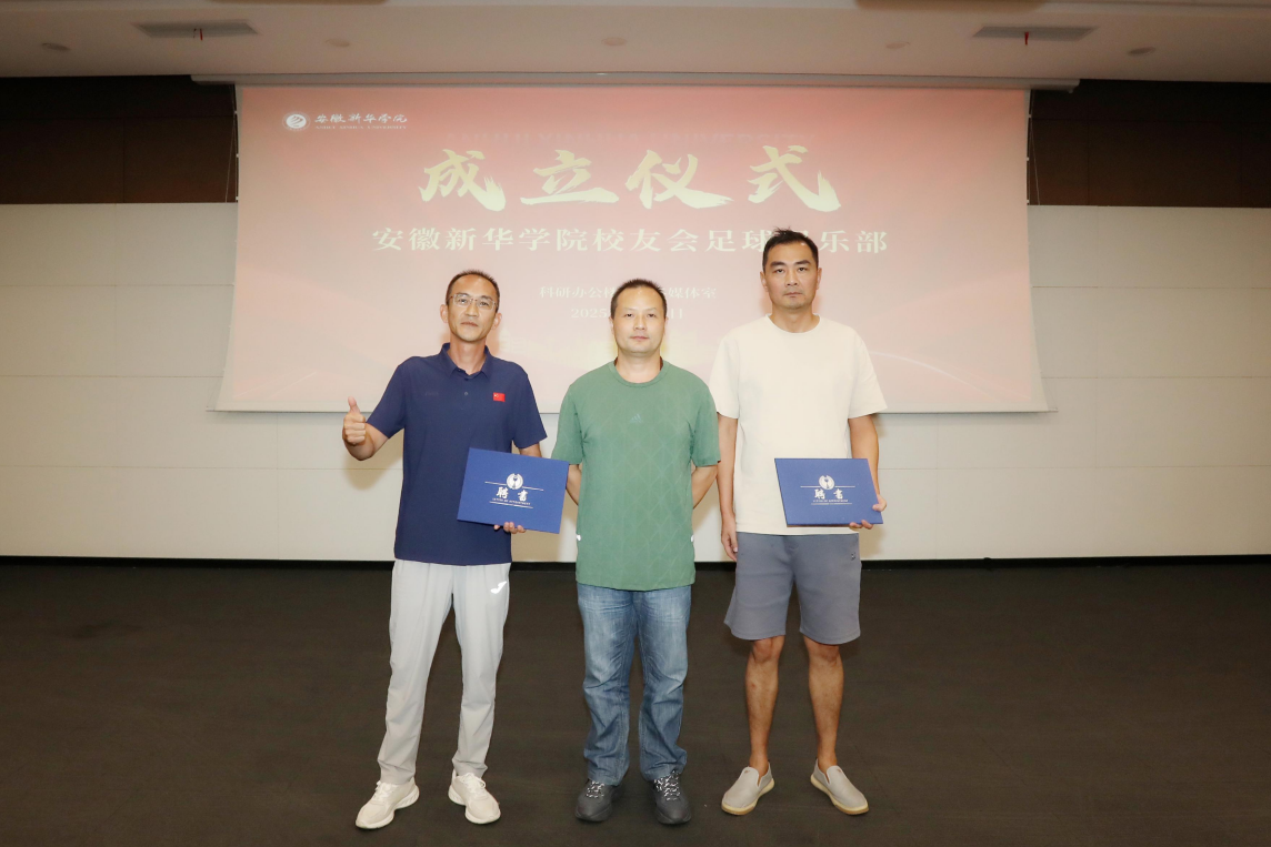 会上,通识教育部主任王士赵宣读了《关于同意成立pp电子官方网站校友会足球俱乐部的批复》文件,明确俱乐部的组织架构、运行规范与发展方向,并正式公布首届负责人名单,由宋加科校友担任队长,汪洋、沈雁平老师担任主教练。王士赵主任和合肥校友分会会长赵成龙为俱乐部教练和队长及管理团队成员颁发聘书。