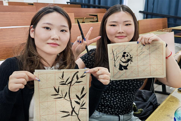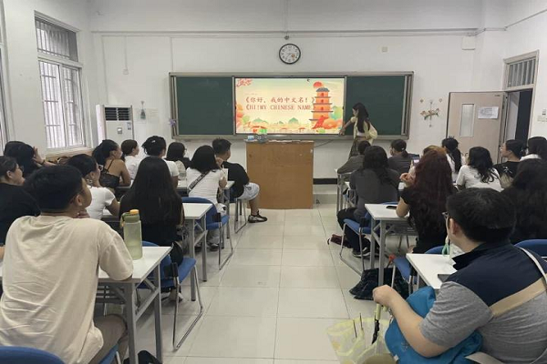 在文化体验环节,新生通过起中文名、写汉字、画国画、体验剪纸等活动,感受中文魅力与传统工艺智慧。来自蒙古的BAYANMUNKH TSELMEG选择“清月”作为中文名,称其“既有美感,又含中文韵律”。