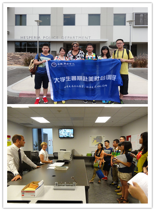 调研团队于美国时间7月21日到达洛杉矶国际机场,并于当晚在美方协调员的安排下入住了各自的美国家庭。22日,同学们认真听讲了协调员对美国公共安全的介绍,并在协调员的带领下参观了希斯皮里亚当地的警察局和消防局。