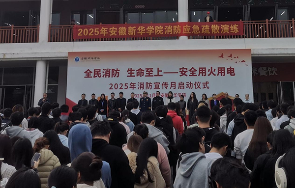 本网讯(通讯员:陈朝辉 摄影:融媒体工作室/张慧欣、闫天爱)今年11月9日是第34个全国消防日。为进一步增强全校师生消防安全意识,全面提升学校火灾防控能力,11月10日下午,学校隆重举行了2025年消防宣传月活动启动仪式。合肥市高新区消防救援大队长王心凯、高新派出所教导员居巍、副校长贺行佳出席了活动;学校相关职能部门、二级学院师生代表、后勤服务人员等900余人参加了活动。启动仪式由学校安全管理处副处长仇陶主持。