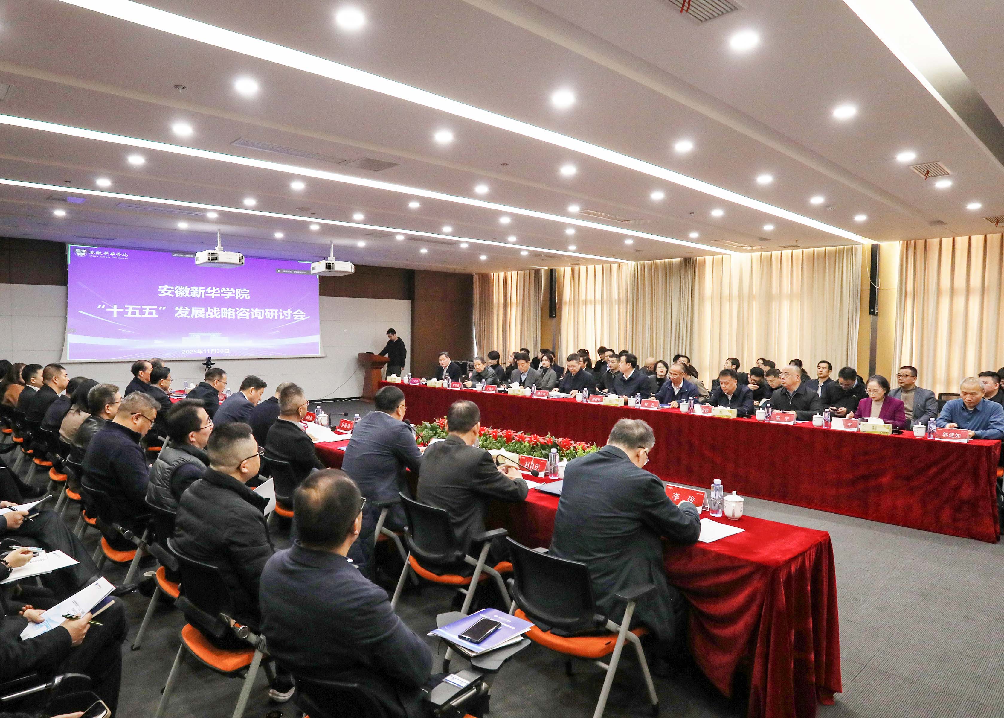 本网讯(通讯员:王蓓蓓)11月30日上午,在全国上下深入贯彻落实党的二十届四中全会精神、全面谋划“十五五”事业发展的关键时刻,根据习近平总书记对“十五五”规划编制工作的重要指示精神,pp电子官方网站“十五五”发展战略咨询研讨会在科研楼一楼多媒体室隆重召开。安徽省委教育工委委员、省教育厅副厅长刘业勋、安徽省教育厅发展规划处处长章平、新华集团领导、安徽大学高等教育研究所领导和相关人员、pp电子官方网站全体校领导及中层管理人员、安徽医科大学临床医学院和南京财经大学红山学院的部分校领导及中层管理人员参会。
