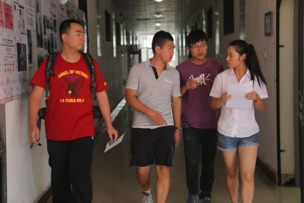 见到刘振宇和付新建的时候,他们正在帮着同是新生的艺术设计专业的江志远和他的父母搬行李,领着他去新生宿舍。新生大多住在六楼,而他们这样来回已经有十几趟了,但仍然干劲十足。江爸爸说:“他们也是新生就这么勤快,帮助其他的学生,很不容易啊!”