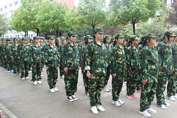 第一天,由于突然降温降雨,训练由室外练军姿转向室内整理内务。只见新生们热情高涨,信心十足,严守纪律,活泼团结。训练场上口令声此起彼伏,踏步声整齐划一,口号声洪亮悦耳。