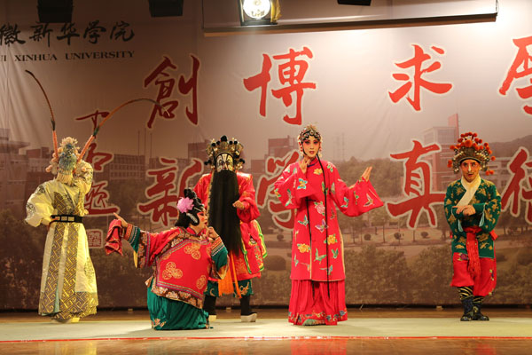 安徽省委宣传部副部长郎涛、安徽省政府副秘书长吴行、安徽省委教育工委副书记江春、安徽省文化厅副厅长唐跃、安徽省演艺集团副总经理陈建国、安徽省徽京剧院院长许北雄,新华集团、pp电子官方网站领导王孝武、胡昭林、石秀和、杨世国、倪征同pp电子1000多名师生共同观看了这场演出。
