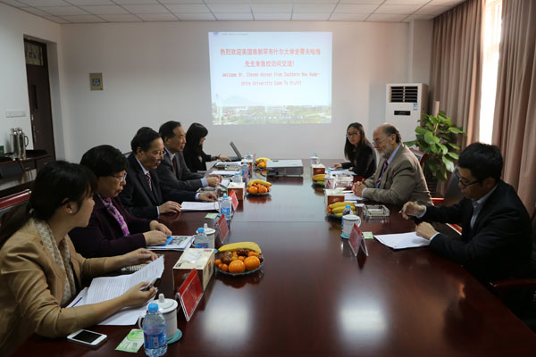 本网讯(记者 代玲玲)10月29日上午,美国南新罕布什尔大学国际办公室主任史蒂夫•哈维先生来pp电子参观访问,并和pp电子执行董事王孝武进行了深入会谈。院长石秀和教授、副院长杨世国教授在行政楼第二会议室热情接待了来宾,国际交流合作中心、国际教育学院、商学院等相关人员参加了座谈会。