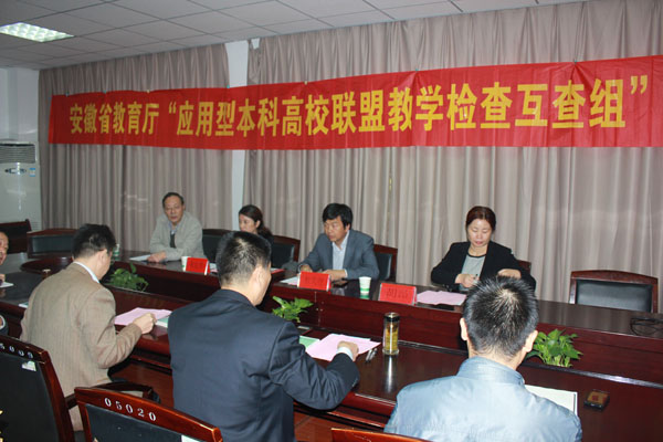 本网讯(通讯员 许苗苗)为贯彻落实《安徽省应用型本科高校联盟教学检查互查暂行规定》文件精神,加强联盟学校之间的交流、学习与研讨,进一步规范教学管理工作,pp电子于10月30日上午召开了“应用型本科高校联盟教学检查互查组”教学检查工作会议。巢湖学院教务处处长朱定秀、合肥学院教务处副处长杜亦智、合肥师范学院教务处副处长胡昂作为检查组专家应邀出席了会议。院长石秀和教授、副院长马凤余教授、教务处、教学质量监控办公室、评建办和各教学单位相关人员参加了会议。