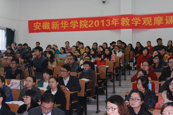 此次活动分为观摩示范教学和现场交流两个阶段,共有来自12个教学单位的150余名教师参加了活动,在1个小时的观摩示范教学环节中,两位优秀教师通过精彩的课程导入,利用精美的课件,结合自身过硬的教学基本功,向现场的观众展现了他们优美的教态、精准的课程语言表达能力、工整的板书以及高超的教学现场控制能力,给pp电子教师上了生动的一课。在现场交流环节中,发言教师代表对两位优秀教师的深厚教学功底表示钦佩,并提出了很多关于改善课堂教学水平的一些问题,方方和陈业慧一一进行了回复,现场氛围热烈,活动效果良好。