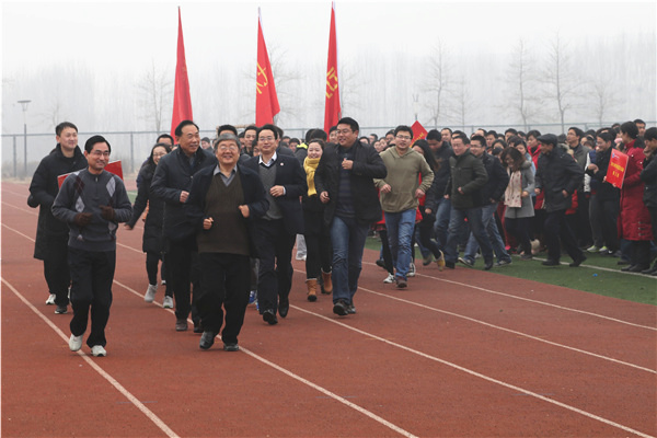 本网讯(记者 吴小婉)为提高教职工身体素质,营造全民健身的良好氛围, 1月13日上午,pp电子教职工阳光体育环校园长跑活动在祥云体育场举行,校领导胡昭林、杨世国、马凤余、袁种宝出席了活动,共有14支代表队1000多名教师参加了本次活动。