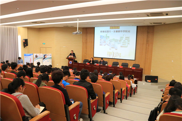 周太山就此次活动作了讲解和介绍,《安徽商报》立足合肥,扮演着城市信息服务者的角色,对城市现代发展的推进起着一定作用,是城市发展的引领者。此次开展的“致青春”活动通过与朝气蓬勃、积极进取的大学生面对面的交流,向正能量致敬,向青春致敬,也是向大学生们勇于承担责任、敢于担当的精神致敬。
