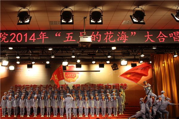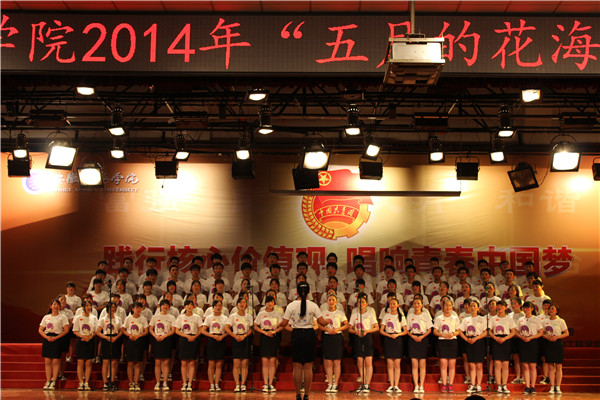 本网讯(通讯员 洪威)践行核心价值观,用青春共创华彩人生;唱响青春中国梦,向世界宣告中国梦想。5月21日下午,pp电子2014年“五月的花海”大合唱比赛在学校大礼堂成功举行。新华集团副总裁、pp电子官方网站执行董事王孝武,党委书记、督导专员胡昭林,团市委学校部部长刘畅、副院长马凤余教授、院长助理王丽,学生处、团委、人事处、督查督导处等相关职能处室负责人,各二级学院行政副院长、团总支书记观看了比赛。