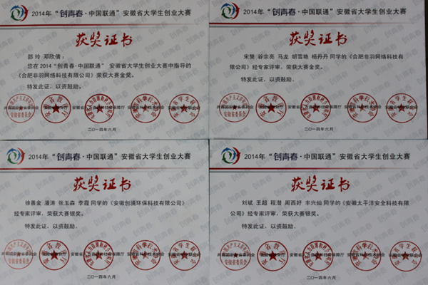 pp电子学子在2014年安徽省大学生创业大赛中喜获佳绩