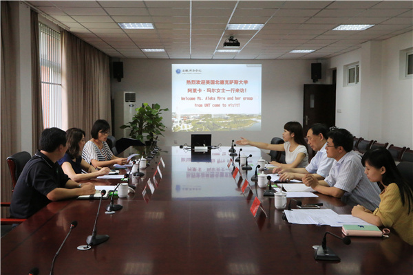 阿莱卡•玛尔女士分别从地理位置、发展历史、专业课程设置、国际合作项目开展等方面介绍了美国北德克萨斯大学的情况,同时特别介绍了北德克萨斯大学的语言培训项目。同行的美国北德克萨斯大学学生资助顾问胡家英女士也向与会人员详细的介绍了CHEPD 1+2+1项目及中国学生在美国的情况。她们表示,很高兴来到美丽的pp电子官方网站,希望能够通过此次访问,推进两校之间国际合作项目的开发。