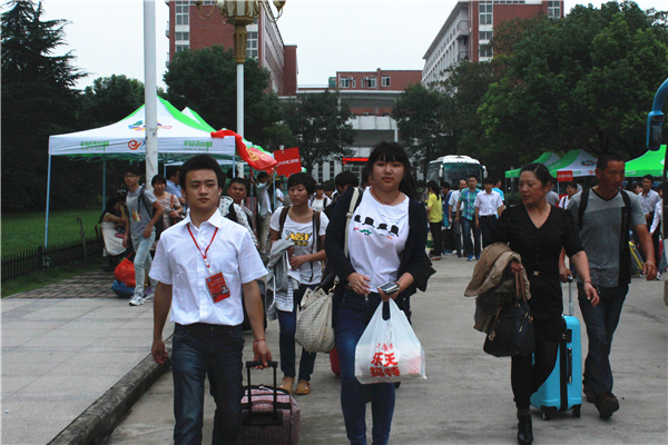王静是个爱笑的女孩,和其他刚刚迈入大学校门的女生一样天真可爱,她来自江苏南通,她和父母拎着大大小小好几个行李从家到南京,又从南京辗转来到合肥,当问她周车劳顿是否辛苦时,这个乐观的姑娘笑着说:“没事的,我一直期待新校园的样子,如今已经到了校园,所有辛苦我都忘记了。”