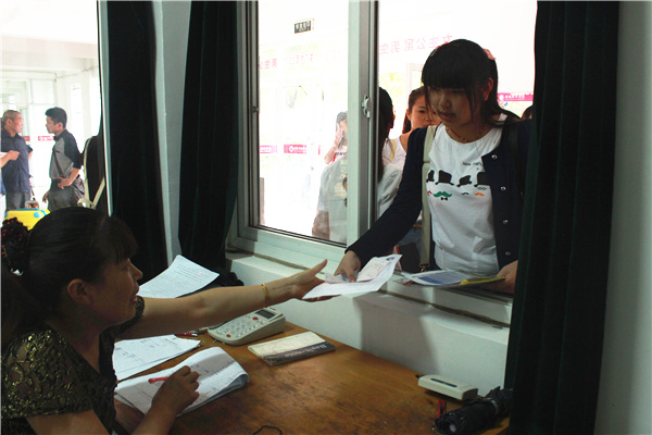 学校设置了接待处,每一个流程都有工作人员负责引导并帮助办理。寄存行李之后,王静很顺利地就到达了商学院的报名点。在接待人员的带领下她拿到报名表格,了解宿舍分配情况。辅导员还给了她入校的温馨提示,提醒她注意人身和财务安全,避免上当受骗。