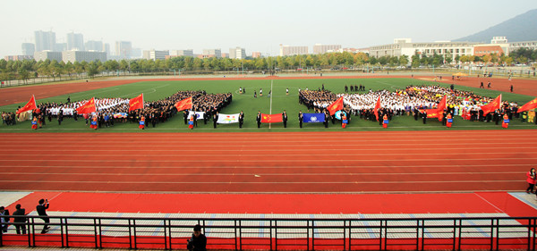 在欢快、昂扬的运动员进行曲中,参加比赛的各二级学院代表团迈着矫健整齐的步伐,紧密结合自身学院特色排成方阵入场。首先进场的是土木与环境工程学院的队伍,他们带着自制的房屋、桥梁模型气宇轩昂地走过主席台。信息工程学院的学生们手拿透明或五彩的雨伞变换出了一个个队形,让人眼前一亮。国际教育学院秉承着国际化理念,异国风情的服装展示出他们的学院特色。身穿民国时期服装的十个男生骑着自行车载着十位女生入场,别出心裁的入场方式展示出文化与新闻传播学院学子热情洋溢的青春活力。动漫学院以Cosplay和卡通人物的装扮吸人眼球。商学院、电子通信工程学院、外国语学院、药学院、继续教育学院也以最特色的方式将学院特色和学生风采展现了出来。