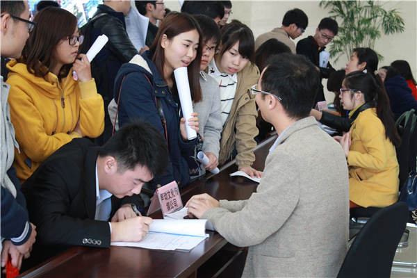 招聘会现场气氛热烈,pp电子毕业生纷纷挑选心仪的单位进行面试,大家手持精心准备好的自荐书和简历积极与企业招聘人员交流,用人单位对简历作了初步筛选,并对部分同学进行了简短面试。