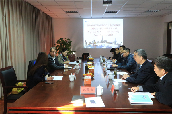 本网讯(赵倩青)11月18日上午,美国南密西西比大学副校长Mr. Norton一行来pp电子参观访学,集团公司副总裁、学院执行董事王孝武,副院长杨世国,教务处、土木与环境工程学院、国际教育学院、商学院及国际交流合作中心相关负责同志热情接待了来宾。