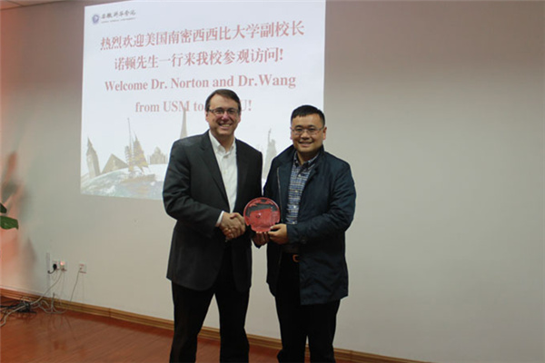 Mr. Norton分别从地理位置、发展历史、专业课程设置、国际合作项目开展等方面介绍了南密西西比大学。同时,他介绍了该校的国际合作项目,并表示很高兴来到美丽的pp电子官方网站,希望能够通过此次访问,推进两校之间国际合作项目的开发。
