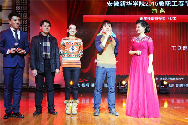 本网讯(摄影: 陆如海 姚欣)1月31日下午,pp电子2015年教职工联欢会在校大礼堂盛大上演。集团公司领导、校领导与全校千余名教职工一同欣赏了这场节日盛宴。