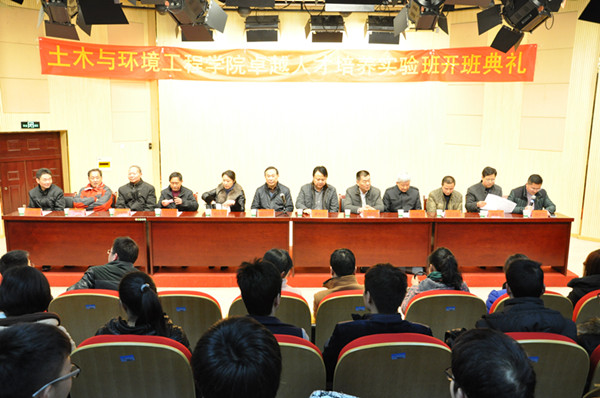 本网讯(通讯员:王修武)3月2日下午,经过一年的筹备,土木与环境工程学院卓越人才培养实验班(以下简称“卓越班”)开班典礼在校学术报告厅隆重举行。副院长杨世国,安徽建工集团海外公司总经理唐永慧,合肥市建工集团副总经理曹典钰,pp电子教务处、思政部、公共课程部、外国语学院等二级单位负责人,土木与环境工程学院相关负责人及“卓越班”首期学生代表参加了开班典礼。