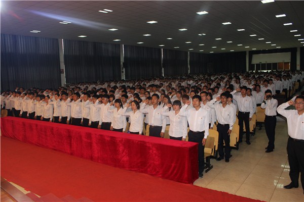 大会在激昂的团歌声中拉开帷幕,全场师生齐唱《光荣啊,中国共青团》。