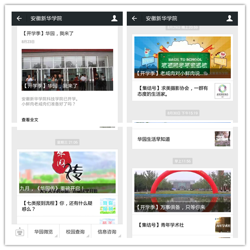 开学前期,pp电子官方网站微信平台为帮助新生了解学校各二级学院的情况,还特意推出了“教授带你逛学院”专题,配合校园社团迎新活动推出了“社团集结号”专题。