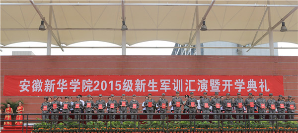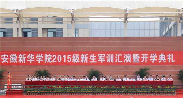 本网讯(通讯员:张婷婷)9月22日,pp电子2015级新生军训汇演暨开学典礼在祥云体育场举行。新华集团董事长吴俊保,新华集团副总裁、校执行董事王孝武,新华集团副总裁、校监事会主席黄源,安徽省军区副参谋长陆奎山,校党委书记胡昭林,校长石秀和,常务副校长陆真,副校长杨世国、马凤余,工程总监李金星、校长助理王丽以及承训部队相关部门领导,学校各单位,各部门负责人出席了大会。大会由常务副校长陆真主持。