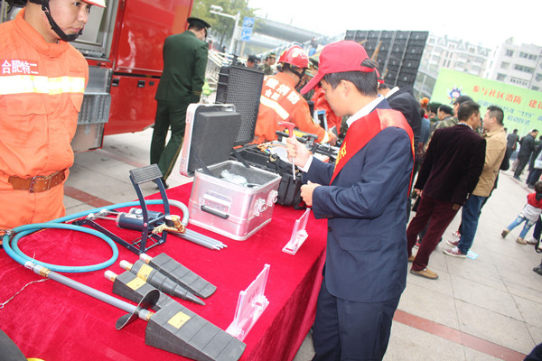 上午,保卫处根据合肥市消防支队工作安排,组织40余名消防志愿者参加“2015年119消防宣传周启动仪式”,志愿者们现场观摩了人员疏散、灭火、救援演练,同时还详细了解、体验了各种消防救援设备的使用。