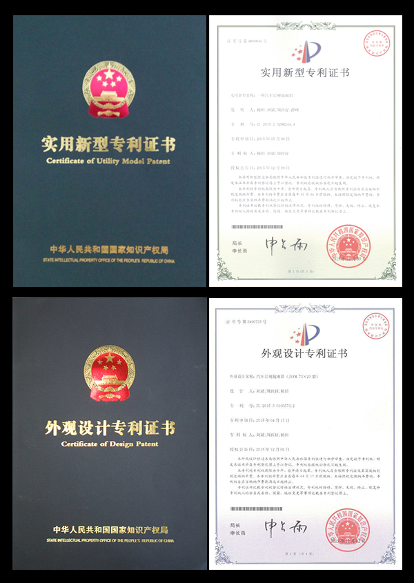 汽车后视镜是汽车主动安全装置的重要部分,其是否清晰关乎到车辆的安全行驶。“一种汽车后视镜雨眉ZL201520288244.4”和“汽车后视镜雨眉(JSYM73×23型)ZL201530103573.2”两项专利针对极端天气下汽车尾流和雨水对后视镜清晰度造成的不利影响,采用喷管技术改变雨水下落轨迹,保证了驾驶员视野的开阔和清晰,对避免车辆安全事故的发生起到了一定的作用。